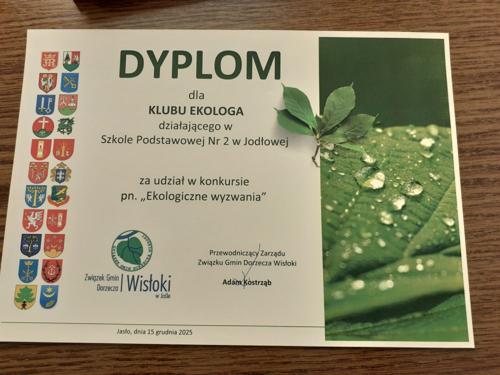 Podziękowanie za udział w konkursie organizowanym przez Związek Gmin Dorzecza Wisłoki - "Ekologiczne Wyzwanie".