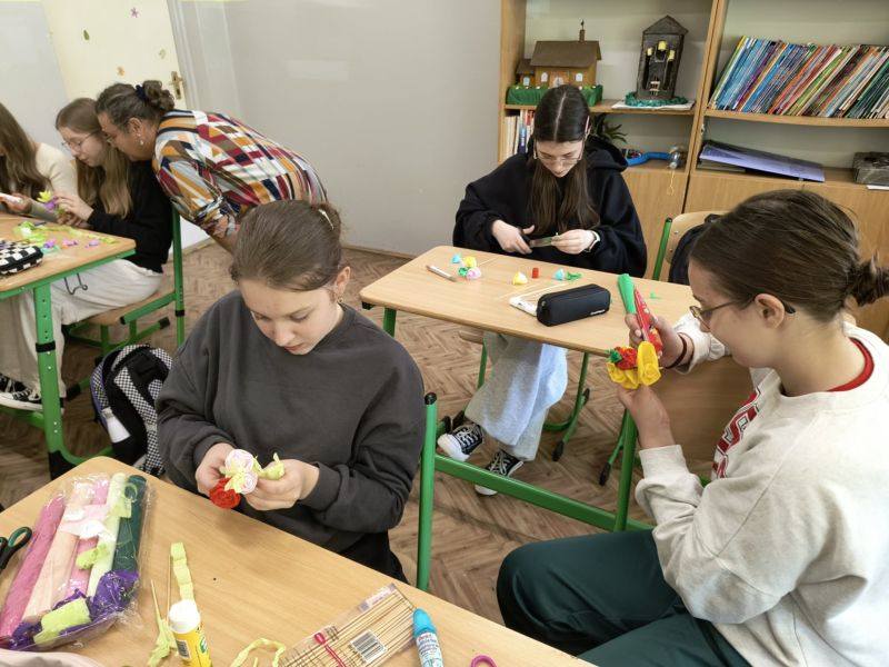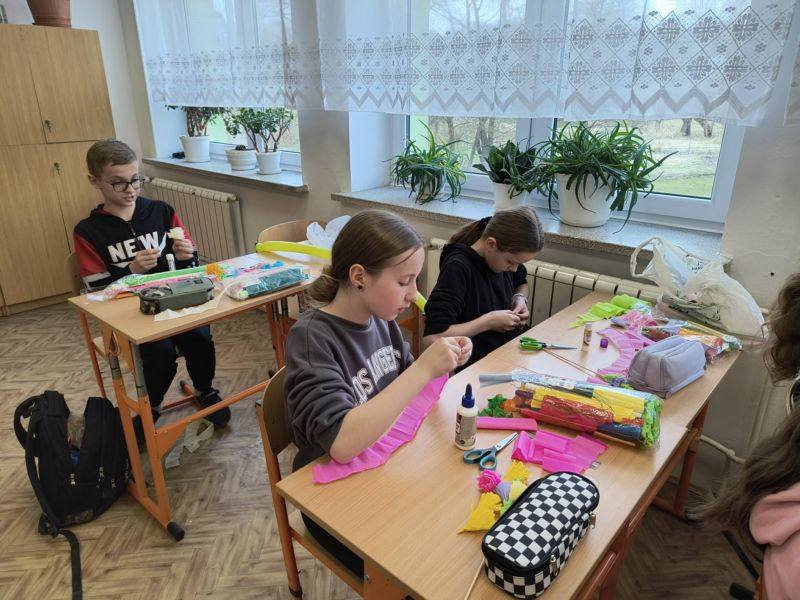 W lekcjach techniki zrobiło się w tym tygodniu wyjątkowo kolorowo i świątecznie! Uczniowie klas 5 i 6 wzięli udział w warsztatach wielkanocnych, które poprowadziła Pani Bogusława Furman z KGW Jodłowa Górna.Podczas spotkania dzieci z ogromnym zaangażowaniem i kreatywnością wykonały piękne palmy wielkanocne z bibuły. Nie zabrakło radości, uśmiechu i świetnej atmosfery, a efekty pracy zachwyciły wszystkich!