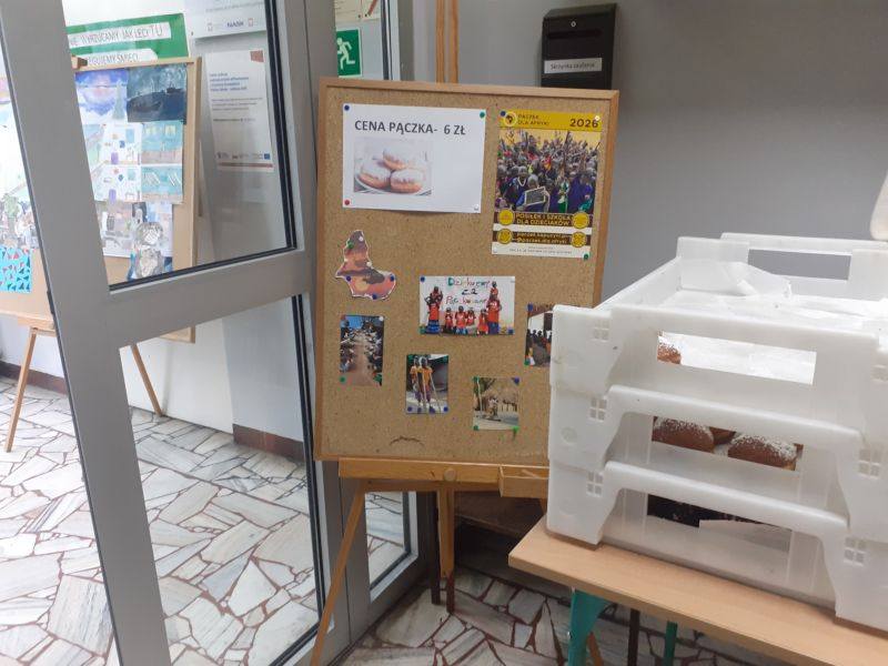 Organizatorami akcji w naszej szkole był SU wraz z opiekunem. Pączki zamówiono w cukierni „Nasza Manufaktura”, które w cenie 6 zł ( były też hojniejsze datki) sprzedano w naszej szkole. Po odliczeniu kosztów zakupu pączków uzyskano kwotę 716,00 zł., którą wysłano do Afryki.