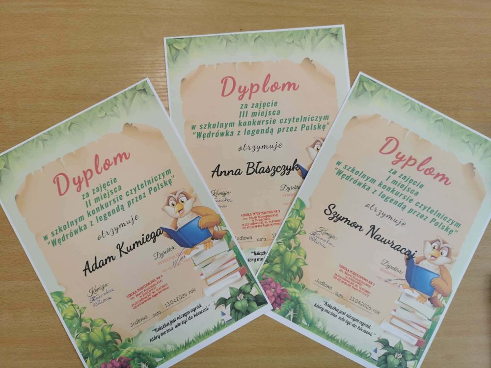W kwietniu odbyły się szkolne eliminacje do Gminnego Konkursu Czytelniczego pod hasłem "Wędrówka z legendą przez Polskę" dla uczniów klas 2-3. Udział w konkursie wzięło 14 osób. Poszczególne miejsca zdobyli:I miejsce Szymon Nawracaj,