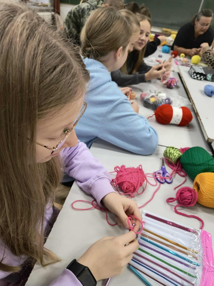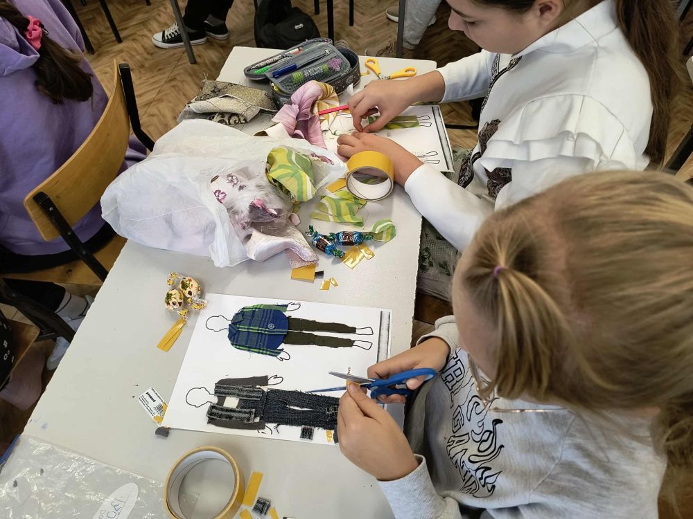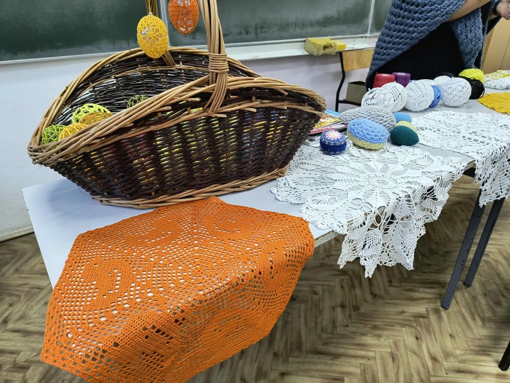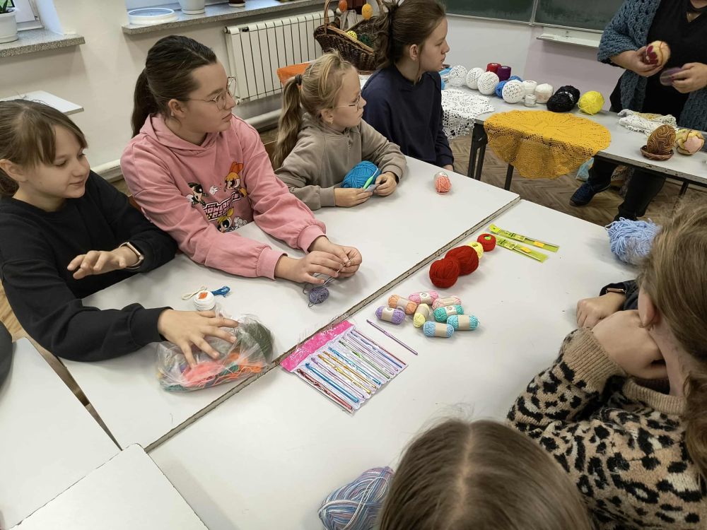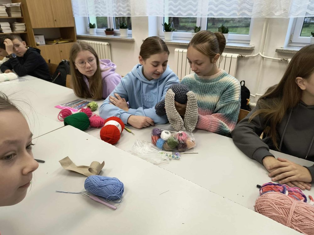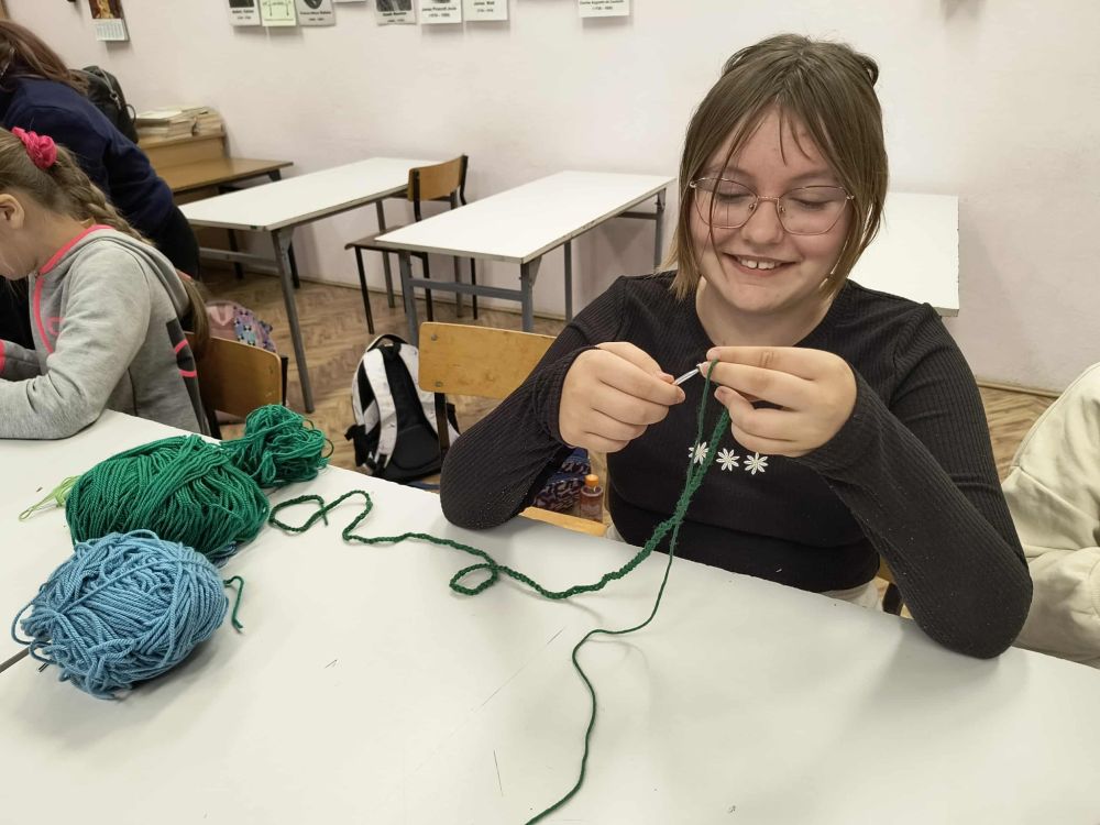 Potrzeba dużo czasu, precyzji i umiejętności. A później efekt jest zachwycający - mowa o SZYDEŁKOWANIU. Dziś w naszej szkole gościliśmy Panią BOGUSŁAWĘ FURMAN ze Stowarzyszenia Koła Gospodyń Wiejskich w Jodłowej Górnej, która przekazywała uczniom klas V i VI tajniki wiedzy na temat sztuki szydełkowania. Pani Bogusia zaprezentowała uczniom, co ciekawego udało jej się stworzyć w wolnej chwili na szydełku i w jaki sposób wykonać te rzeczy krok po kroku- a możliwości wykorzystania tej techniki jest wiele- od ozdób, zabawek, po piękne serwetki, odzież i inne przedmioty. Dzieci chętnie słuchały rad oraz wskazówek, po czym ruszyły do zajęć praktycznych. Pod czujnym okiem Pani Bogusi rozpoczęły naukę od podstawowego ściegu, czyli łańcuszka. Zadanie z pozoru łatwe, okazało się nie lada wyzwaniem dla niektórych uczniów. Pomimo napotkanych trudności, powstały pierwsze łańcuszki wykonane tą techniką.To nie były pierwsze zajęcia uczniów związane z włóknami i materiałami- na wcześniejszych zajęciach dowiedzieli się, z czego powstają materiały włókiennicze, omówili ich zastosowanie, poznali metody konserwacji odzieży. Wcielali się również w rolę kreatorów mody i projektowali stroje na różne okazje.