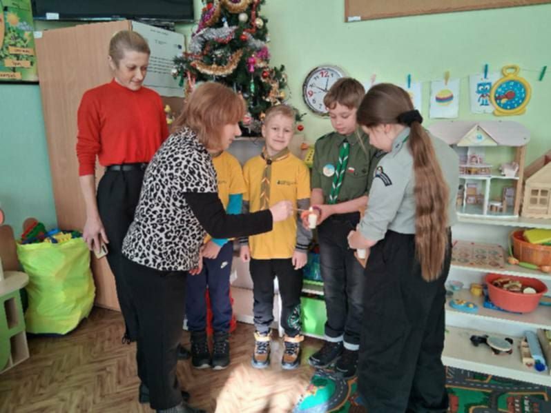 Zuchy i harcerze ze Szkoły Podstawowej Nr 1 im. ks. Franciszka Blachnickiego w Jodłowej wraz z Panią Dyrektor Alicją Mikrut w ramach betlejemskiej sztafety przekazali naszej szkole Betlejemskie Światło Pokoju. Dziękujemy bardzo!