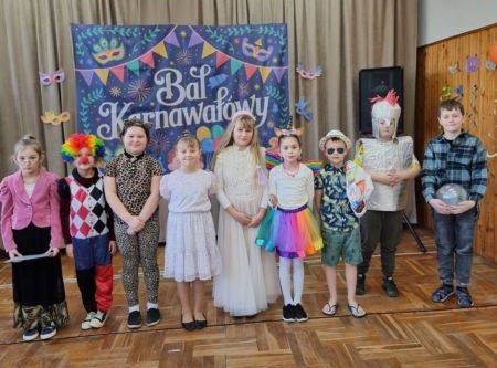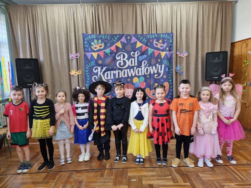 W czwartek 12 lutego odbył się w naszej szkole długo oczekiwany przez uczniów klas 0-III bal karnawałowy. Tego dnia sala gimnastyczna zamieniła się w barwną krainę pełną wróżek, księżniczek, czarownic, rycerzy, sportowców, karateków, klaunów, biedronek, dinozaurów, piratów, oraz innych postaci z bajek.Tradycyjnie punktem kulminacyjnym balu był konkurs na najpiękniejsze przebranie karnawałowe. Przyznano następujące miejsca i wyróżnienia: